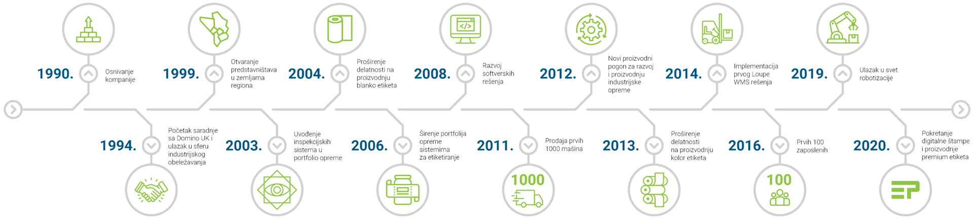Pokretanjem sopstvene proizvodnje opreme i samolepljivih etiketa, nadogradili smo postojeći portfolio opreme za industrijsko obeležavanje i etiketiranje i time zaokružili ponudu na tržištu.