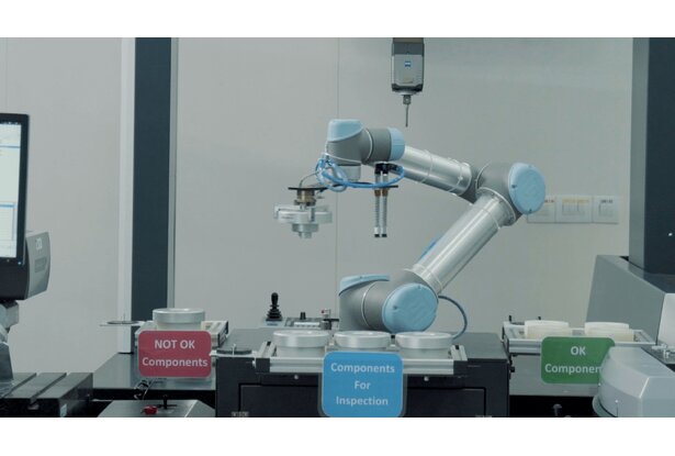 This cobot weighs only 11.3 kilograms and is capable of handling loads up to 3kg. Its 360-degree rotation at all joints, as well as infinite rotation at the end joint, make it suitable for motion optimization in applications involving assembly and application of screws.