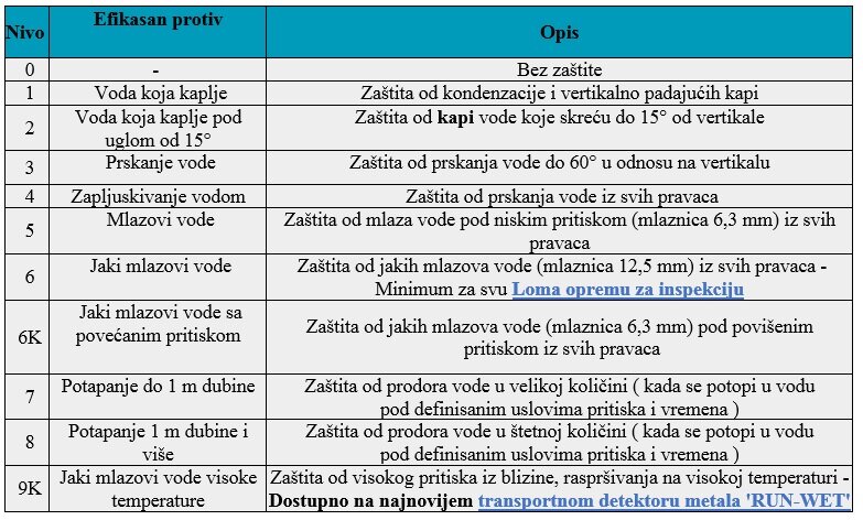 Tabela u nastavku prikazuje da zaštitu od vlage: